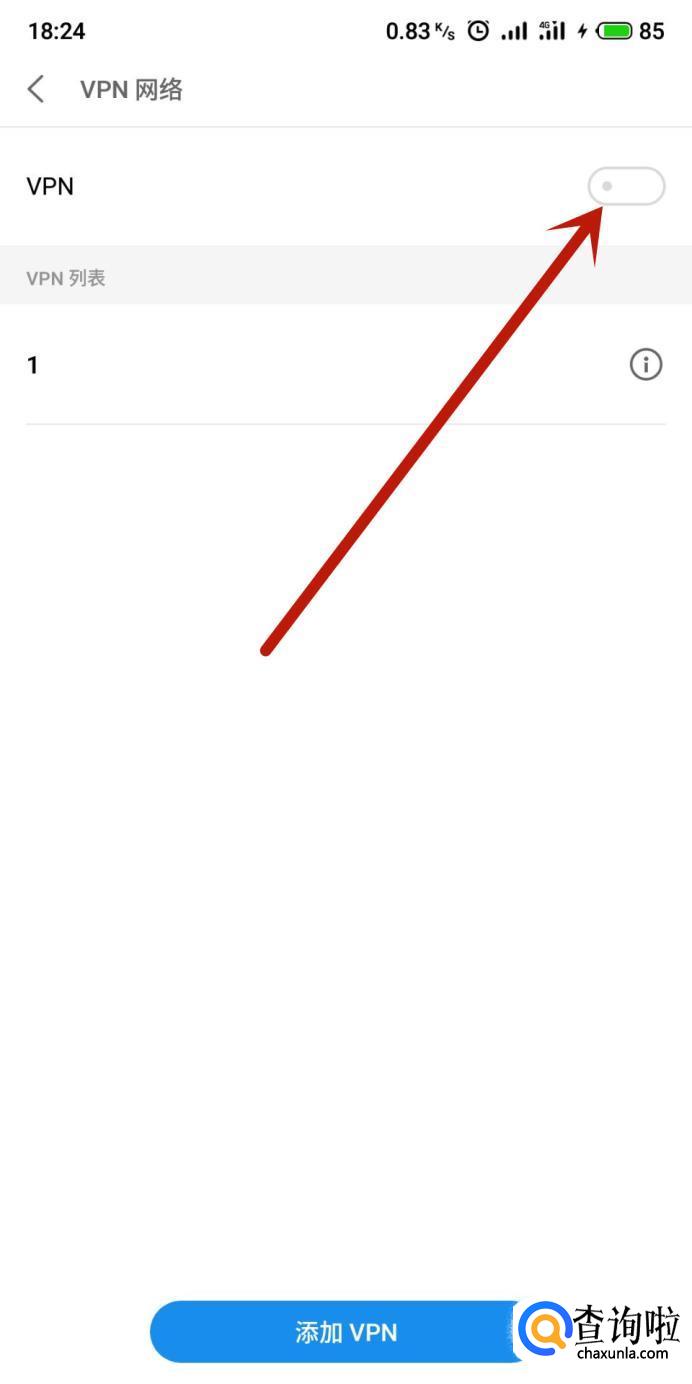 返回该页面,打开“VPN开关”,如图所示。