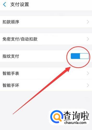 进入之后,点击图示位置按键即可取消指纹支付,如图所示。
