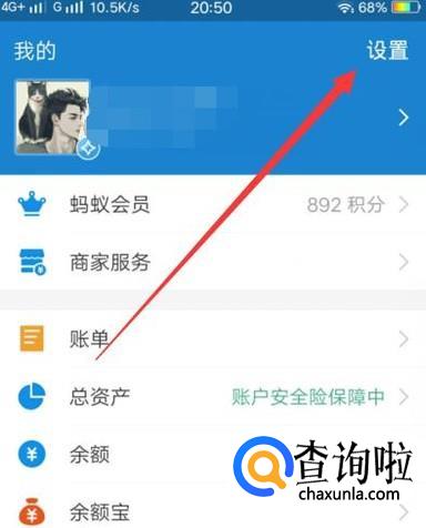 进入之后,点击“设置”,进入下一页面,如图所示。