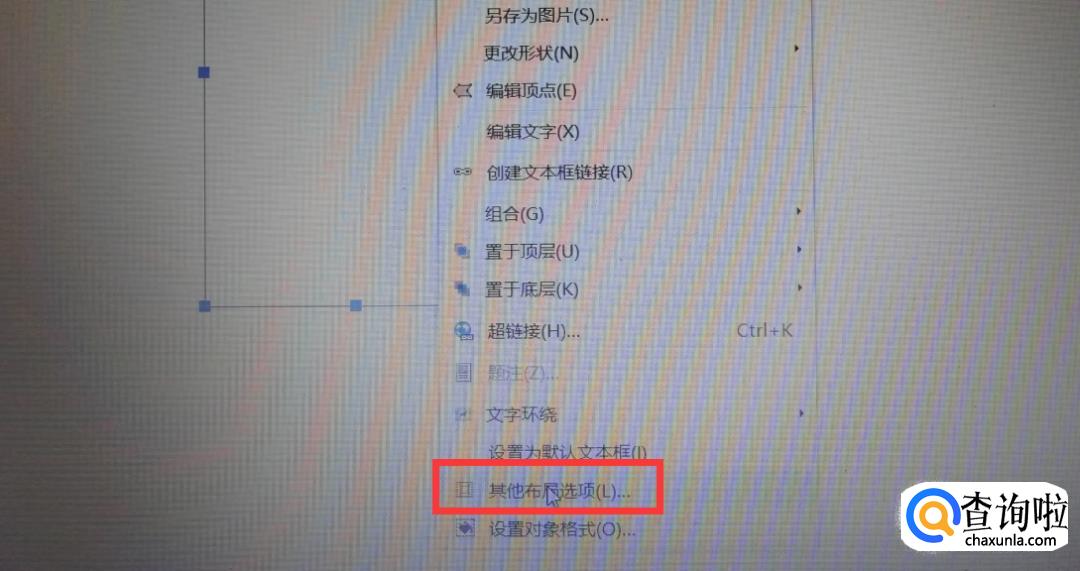 在文档的空白处,按住鼠标左键拖动,画出一个文本框,并点右键选择“其他不布局选项”。