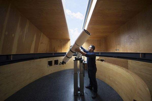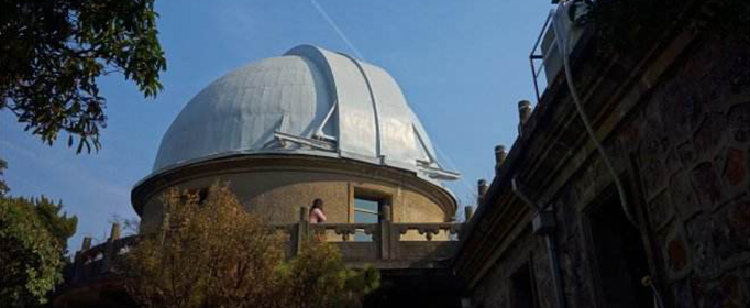 天文台的半圆球形屋顶其实是它的观测室,球壁上有一个从屋顶中心延伸到屋内的巨大天窗,天文望远镜就是通过它来观测太空的。