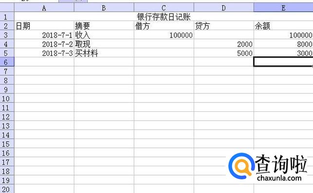 从第三行开始把正常的业务记录进去,每天增加的金额记在借方,每天减少的金额记在贷方,当天的余额等于上一天的余额加上当天的借方金额,减去当天的贷方金额。这样,银行存款日记账就设置完了,边框根据个人喜好,加不加都可以。