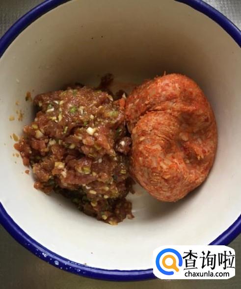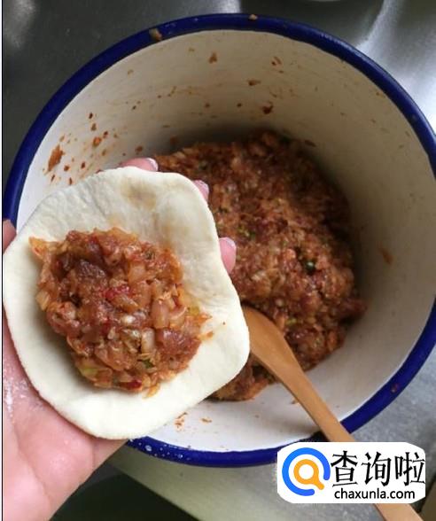 将肉馅加到准备好的辣白菜馅里,搅拌均匀,一般不需要另外加盐。
