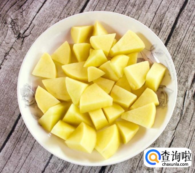 首先我们要先将土豆、茄子、青椒削皮然后用清水清洗干净,然后切成块备用,土豆的话最好先泡一下水。
