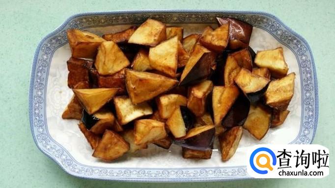 然后把土豆块用油炸至两面金黄捞出备用,茄子油炸的时候需要裹一层淀粉,同样炸至表面金黄捞出备用。