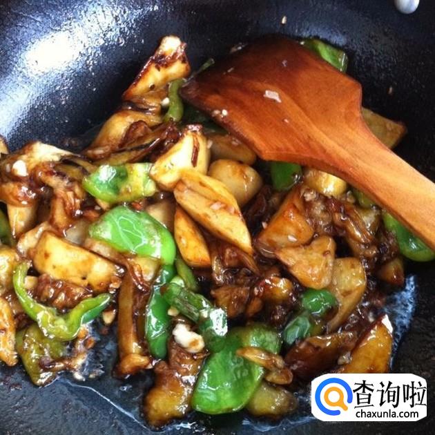 最后就是葱姜蒜爆香,把炸好的土豆、茄子,青椒一起翻炒,倒入一些盐、生抽,倒小半碗水闷一下就可以出锅了。