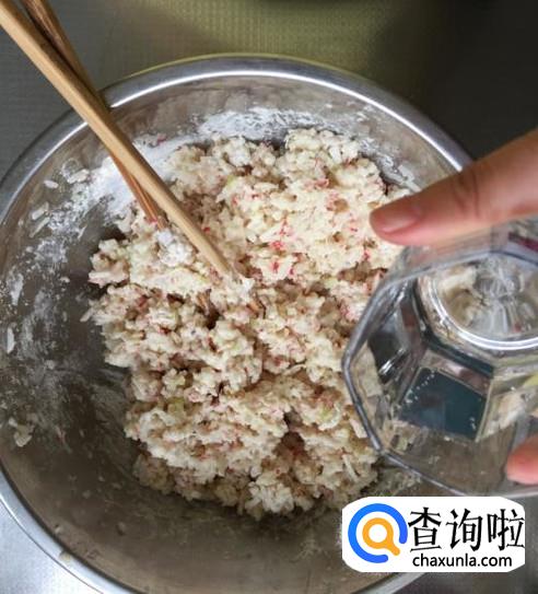 加入适量面粉,水,盐,搅拌均匀。