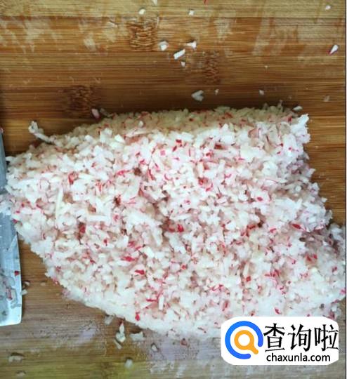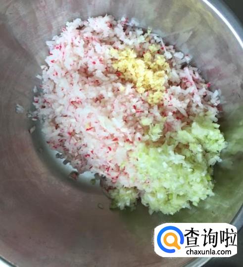 葱姜适量剁碎,加入萝卜里。
