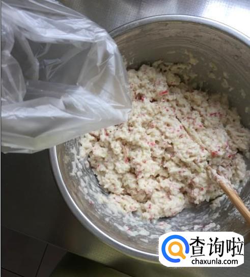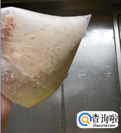 将拌好的料放进塑料袋里,在塑料袋一个角上剪个口。