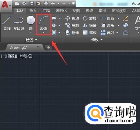 选择圆弧选项我们在绘图区里随意绘制一段圆弧,如图所示: