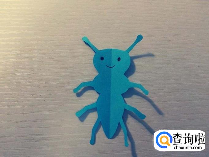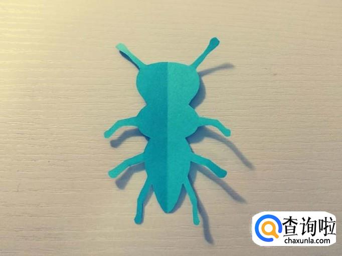 将剪好的纸张展开,小蚂蚁的形状就出来了