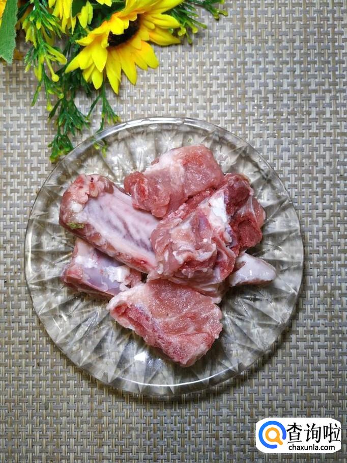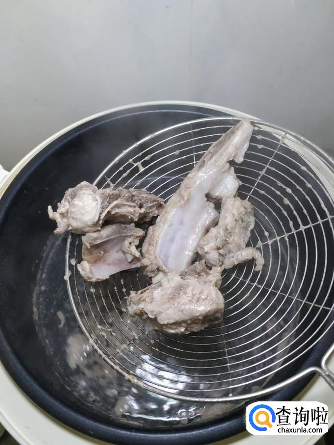 准备适量排骨,用清水洗净后,放入锅中焯水,焯至颜色发白后,捞出备用。