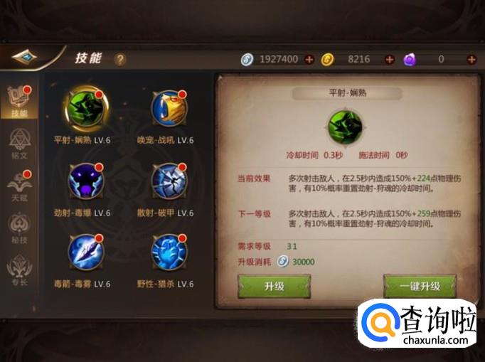 另外玩家还可以给角色的技能进行升级,升级之后角色的战力也会获得提升。
