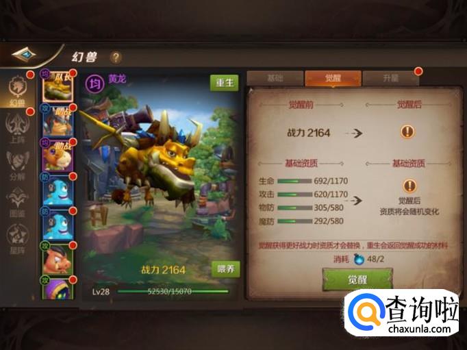 游戏中的幻兽除了可以升星外还可以觉醒,玩家升星幻兽或者觉醒幻兽都能提升角色的战力。