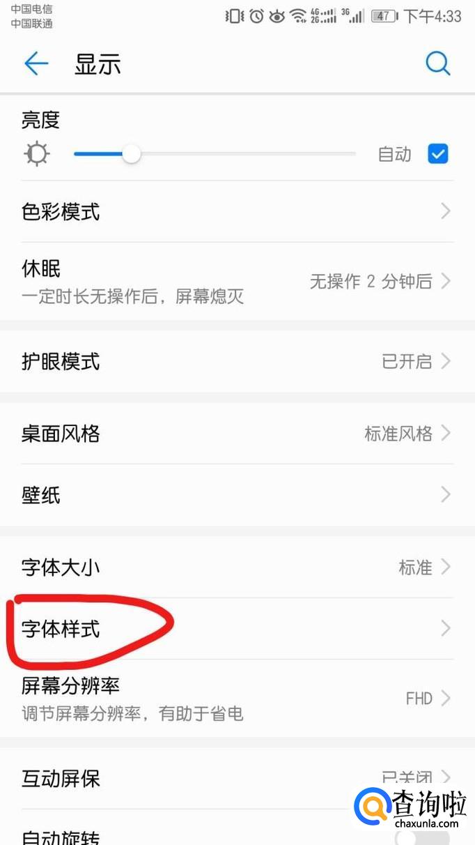 “字体样式”的更改也同样在“显示”中,找到“字体样式”点开,里面就会有许多字体样式模板。点击自己喜欢的就可设置。