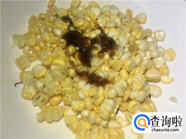 然后再把玉米一粒粒给剥下来,加入少许蚝油,搅拌均匀,这样玉米也比较入味了。