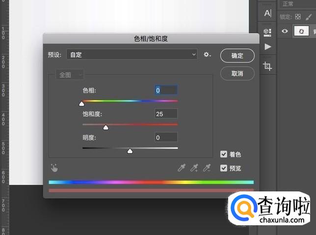 接着按CTRL+U打开色相/饱和度面板,勾选“着色”选项。