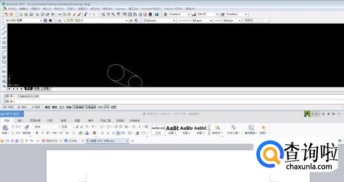 我们先打开一个CAD,然后再打开一个WPS文字来演示。