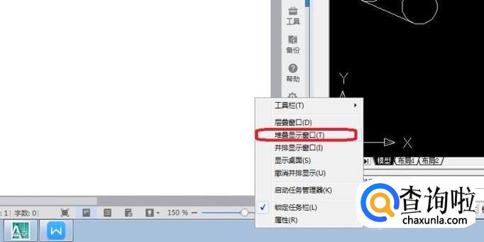 我们还可以选择上下堆叠显示两个窗口,如图所示,右键单击任务栏,选择“堆叠显示窗口”。