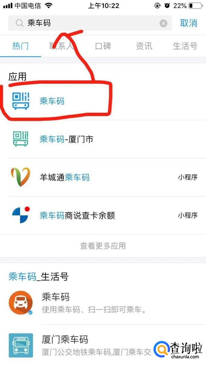 同样在支付宝搜索框中搜索“乘车码”。