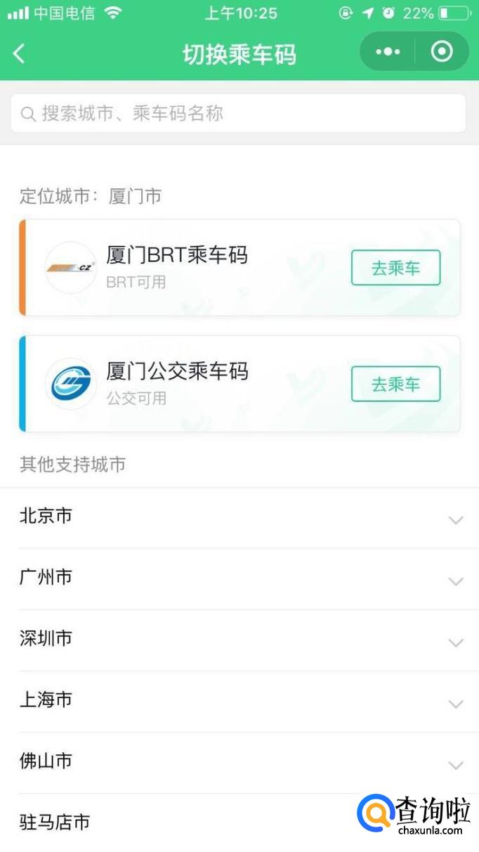会自动定位自己所在的城市的乘车码。