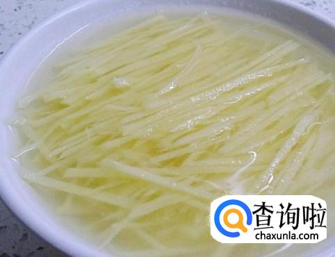 土豆丝切好以后放在盆中,用清水洗一下,洗去土豆中的淀粉,这样,在炒的时候,就不会发黏了,吃起来比较清爽。