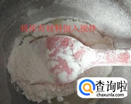 接着筛入米粉拌匀粉与牛奶鸡蛋搅拌均匀至无颗粒状,如下图所示
