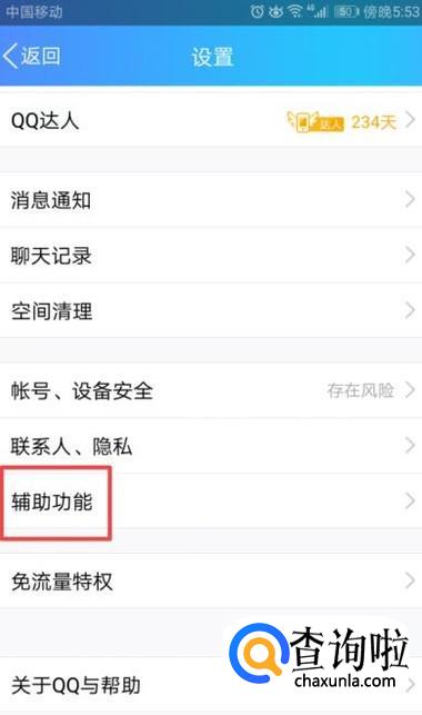 弹出的界面,我们点击辅助功能;