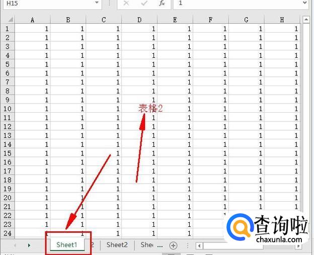 选择表格1 中的“1”,如图。