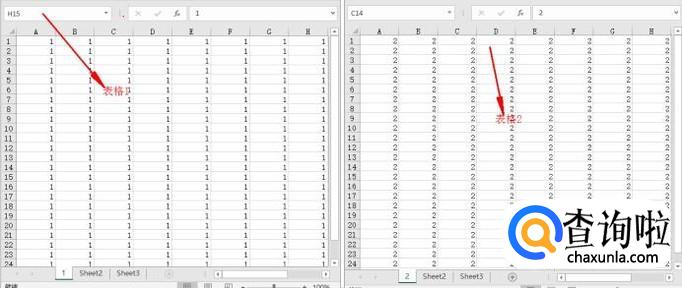 表格2中出现新的Sheet1,即为刚刚文档1中内容,合并完毕。
