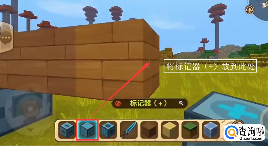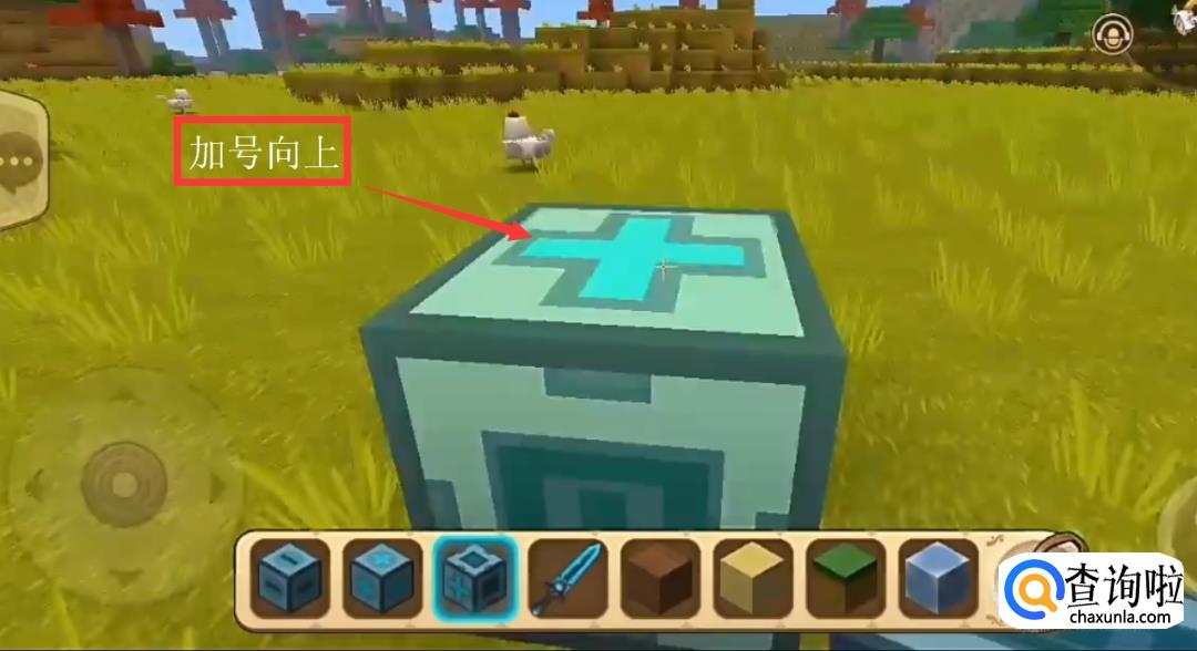 首先我们选中【滑动方块】,然后在草地上选择一个空的位置放上【滑动方块】,在放置时加号向上。