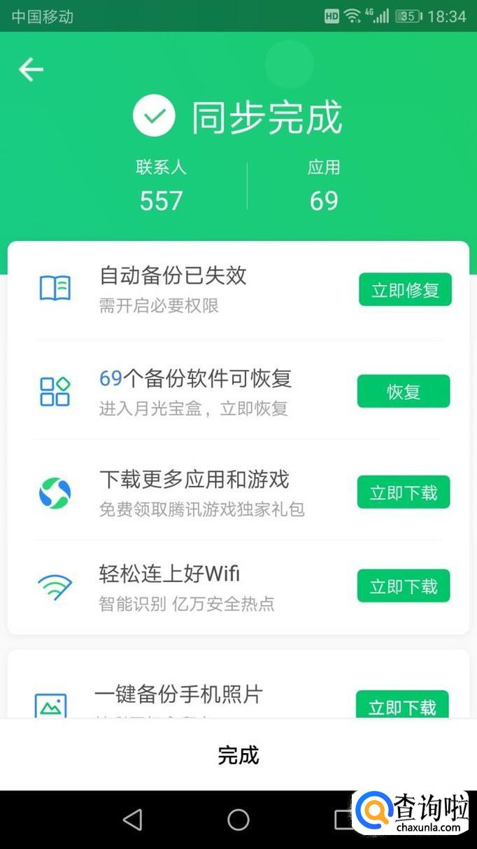 进入后就开启了云端同步通讯录,完成后点击完成即可。