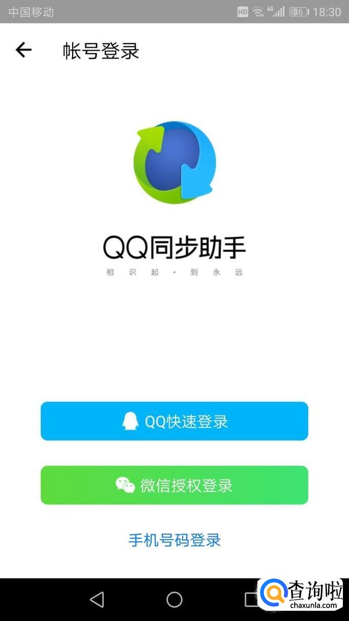 在手机上下载并安装“QQ同步助手”,并点击进入此软件,进入后选择QQ登录。
