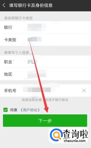 补充完个人与银行卡信息,点击“下一步”,如图所示。