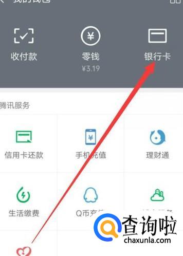 进入之后,点击“银行卡”,进入下一页面。