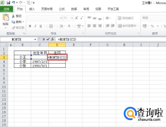 之后我们在该单元格中输入=MONTH(C3),然后我们按回车键;