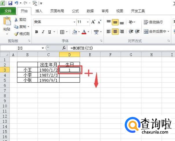 结果如图所示,这样我们就提取出该员工的生日月份了;