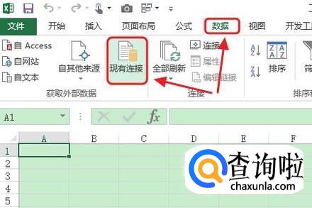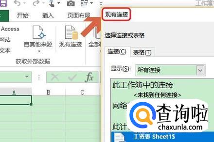 接着点击工具栏的“数据”-“现有连接”,然后就会在表格上弹出现有连接对话框,如图二;