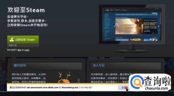 选择“安装Steam”,点击“立即安装Steam”-“运行”。
