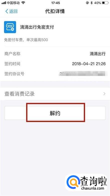 然后点击解约,如下图所示。