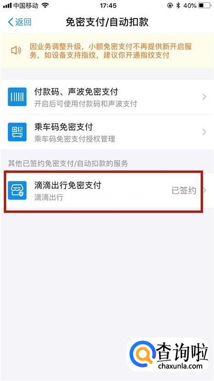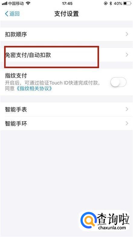 然后点击免密支付/自动扣款,如下图所示。