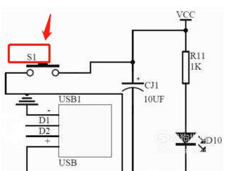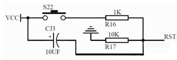 按键复位:按键复位就是在复位电容上并联一个开关,当开关按下时电容被放电、RST也被拉到高电平,而且由于电容的充电,会保持一段时间的高电平来使单片机复位。