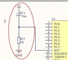 上电复位:STC89系列单片及为高电平复位,通常在复位引脚RST上连接一个电容到VCC,再连接一个电阻到GND,由此形成一个RC充放电回路保证单片机在上电时RST脚上有足够时间的高电平进行复位,随后回归到低电平进入正常工作状态,这个电阻和电容的典型值为10K和10uF。