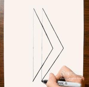 接下来换到黑笔。从这两条灰线的起点开始,斜着画两条平行线,直到折痕的位置,然后再从折痕处画到另外一头。
