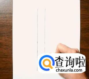 展开之后,垂直折痕方向用灰色的笔画出两条平行线。