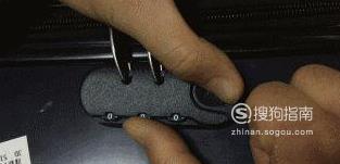 把行李箱的第一位密码,先定格在数字0上。用适当的力量用右手把密码锁开关扳向打开的方向,从最左边一位密码慢慢旋转,感觉右手稍微一动,再来第二位,然后继续。