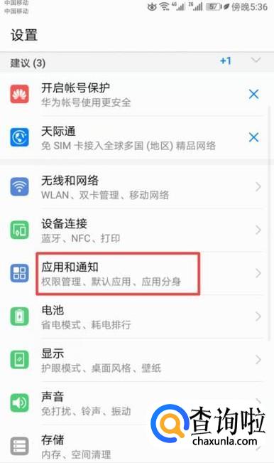 弹出的界面,我们点击应用和通知;