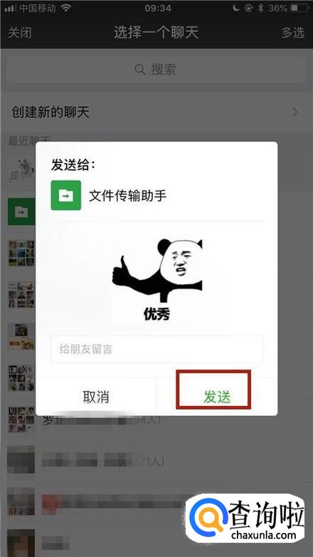 然后选择要发送的聊天渠道,如下图所示。本文以微信为例。