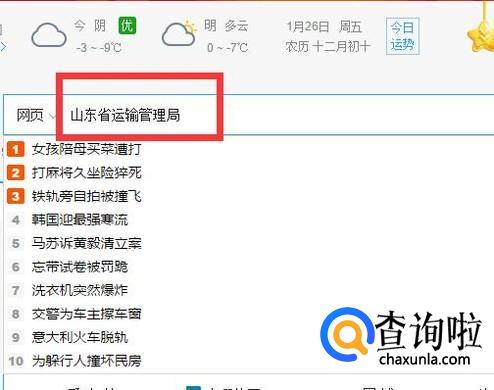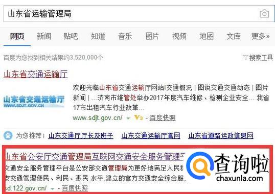 首先,我们打开任意浏览器,输入“山东省运输管理局”,如下图所示。注:我们以山东省为例。