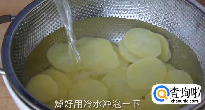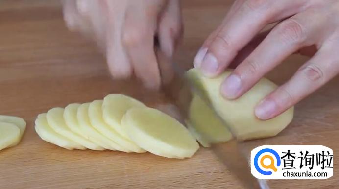 将土豆切片,可以稍微切厚一点,后面煮的时候不容易碎。